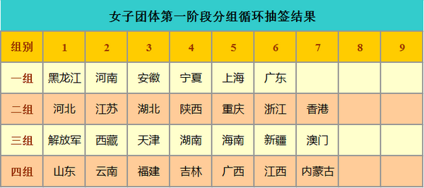 Group 1: Heilongjiang, Hennan, Anhui, Ningxia, Shanghai, Guangdong